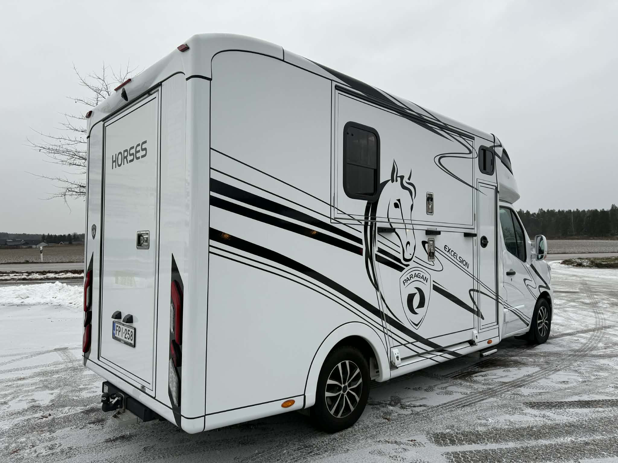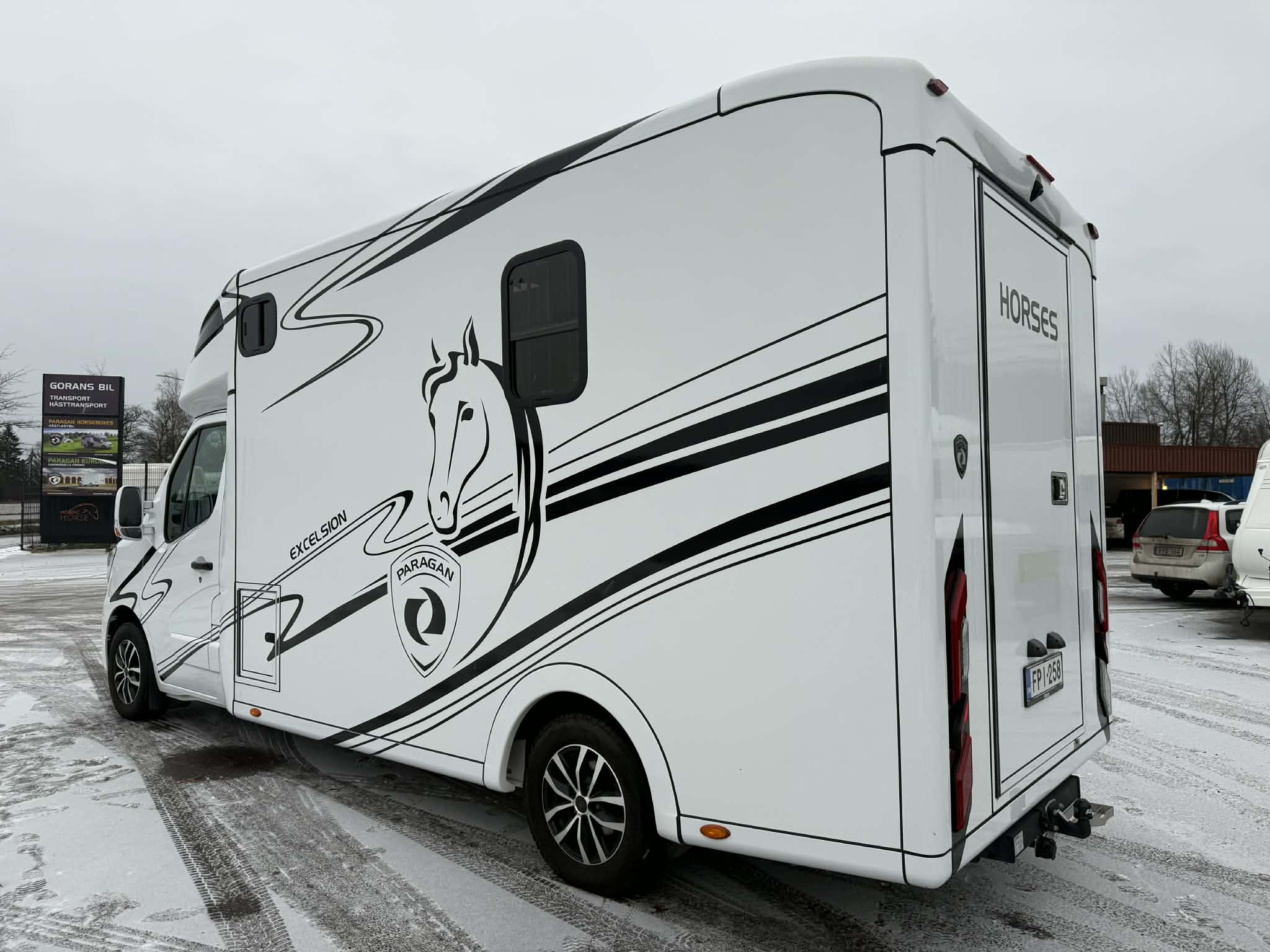 En förstklassig hästlastbil för dig som ställer höga krav på komfort, säkerhet och funktionalitet. PARAGAN EXCELSION 5XL är det självklara valet för den kvalitetsmedvetna hästägaren. Den erbjuder en trygg och laglig transport av både hästar och passagerare – med plats för två hästar och upp till två personer. Den extra rymliga och smart utformade designen höjer komforten till en ny nivå, både för människa och djur. I kabinen erbjuds extra bekvämlighet genom vridbara stolar och ett praktiskt bord i mitten, generös förvaring samt ett integrerat kylskåp som gör resorna både smidigare och mer avslappnade. För övernattning finns en extra förlängd sovalkov med öppningsbara fönster, vilket skapar en ljus, luftig och trivsam viloplats ovanför förarkabinen. Hästdelen är utrustad med robust stuteriinredning, delade stuteridörrar in till spiltorna och högkvalitativa materialval som garanterar både säkerhet och hållbarhet. Hästarna står separerade i egna spiltor, men för sto med föl kan utrymmet enkelt anpassas till en öppen boxlösning. Den genomtänkta premiumdesignen, både invändigt och utvändigt – gör PARAGAN EXCELSION 5XL till ett val som är lika praktiskt som oslagbart i sitt uttryck.