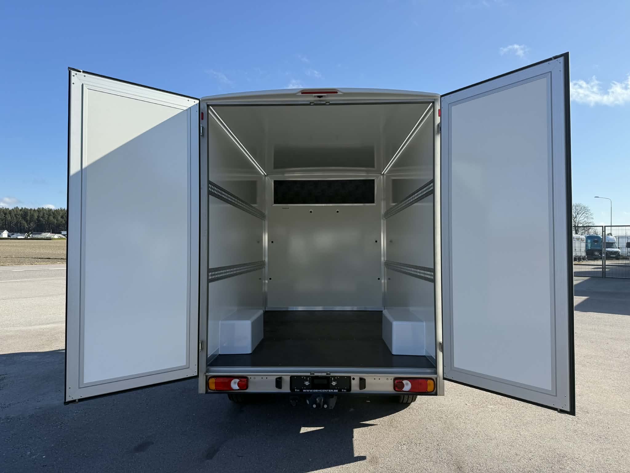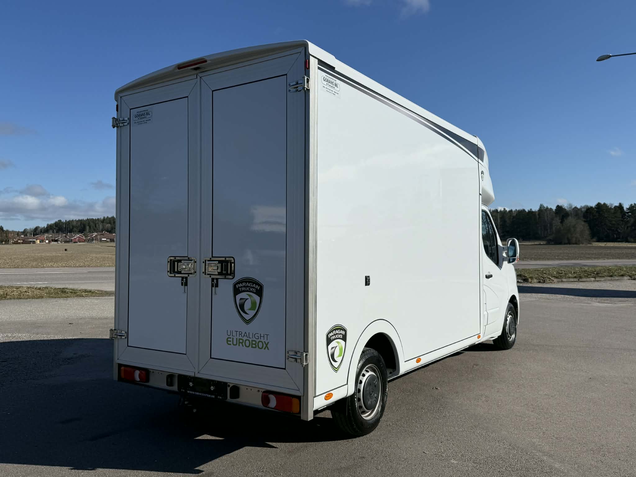 Till skillnad från andra lätta lastbilar är påbyggnaden Eurobox tillverkad av ett speciellt ultralätt och mycket hållbart material, som minskar fordonets vikt väsentligt och därmed ökar nyttolasten. I dennaXL-version är lastvikten upp till 1250 kg! (Beroende på utrustning &tillval) Egenskaperna hos materialet kännetecknas av hög resistans motkemikalier, nötning och repning. Det använda ekologiska materialet är korrosions beständigt och ruttnar inte, vilket garanterar lång livslängd.Fordonet med påbyggnaden Eurobox har blivit det lättaste kommersiella fordonet på marknaden i kategorin upp till 3, 5 ton och har ett lastutrymme som är så stort som 19 m3